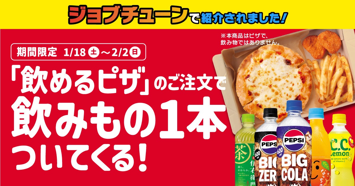 「飲めるピザ」に飲みものがついてくるだけでなく、「ジョブチューン」の番組内でも紹介された「飲めるピザの食べ方」が背面に記載された“アレ” があなたのもとに届くかもしれません…。